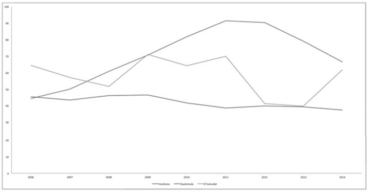 Thus, these nations who survived political violence armed-conflicts and/ or military repression during the Cold War now suffer the vicissitudes of a war between organized crime. Making situation that Guatemala, Honduras and El Salvador in the most violent countries in the world, high rates of homicides recorded realize that classification (see Figure 4).