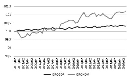 What we found is that the growth of the entity has remained constant throughout these periods while that of homicides has skyrocketed, especially since the second quarter of 2008, where it exceeded the dynamics of growth of the entity.