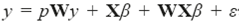 If the aforementioned spatial dependence is incorporated into the perturbations, it is done as follows: y = Χβ + u, where u = Wu + ε. This type of model is known as the Spatial Error Model (SEM). Furthermore, the model known as SARAR is obtained from the union of the SAR and SEM models. However, if we incorporate the impact of the regions as an exogenous variable within the SAR or SEM model, we have: