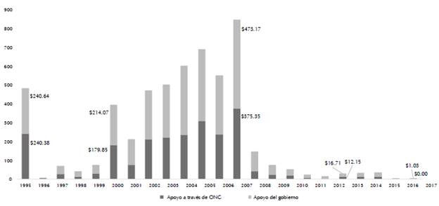 Como se observa, a continuación, en la figura 3, la ONU, por medio del Fondo Central para la Acción en Caso de Emergencias (CERF, su sigla en inglés), le ha otorgado a Corea del Norte más de US$ 118 millones durante el periodo 2007-2016 (ONU/CERF, 2016). La mayoría de este capital se ha destinado a programas de salud, nutrición y sanidad.