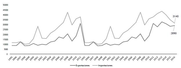 Debido a la economía cerrada de Corea del Norte, sus transacciones suman en total apenas un poco más de US$ 6.000 millones, como se podrá apreciar en la figura 5, lo que mantiene una balanza de pagos negativa. Esto puede resumir la naturaleza de sus relaciones comerciales.