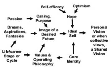 Multiple change models have attempted to provide effective solutions for dealing with employee inertia and resistance to change. The intentional change theory suggests that organizations are most likely to experience the desired outcomes in change management when their employees and leaders make five discoveries. The first and most important discovery is the “activation of an individual’s ideal self” (Boyatzis et al., 2012, p. 19). Figure 4 illustrates the various components that comprise the ideal self, including the importance of shared and collective visions in influencing the development of the ideal self.