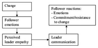 According to Ugoani (2017), three emotional intelligence factors are necessary for successful organizational change management, including change catalyst, leadership, and empathy. Supporting evidence on the importance of empathic leadership comes from Smollan and Parry’s (2009) qualitative study on the relationship between attributed emotional intelligence of change leaders and employee response to change processes. The researcher found that followers who feel that their change leaders, catalysts, or agents “understood their emotional reactions, and responded appropriately” had a more positive orientation and were comfortable with the change process (Smollan & Parry, 2009, p. 2). Figure 5 provides a diagrammatic representation of the role the perceived empathy of the change leader plays in ensuring effective change management. It shows that the perceived leader’s empathy, which emanates from high emotional intelligence, is a mediating influence that affects how employees respond to organizational change. Depending on it, employees can commit to or resist organizational change (Smollan & Parry, 2009).