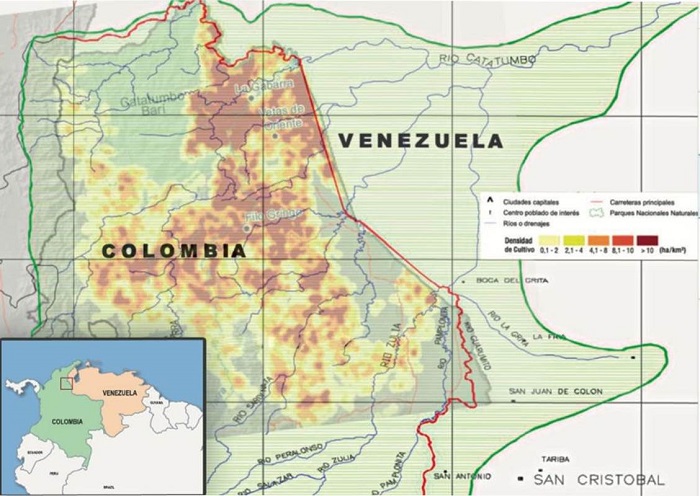 La cuenca del río Catatumbo sin duda ha adquirido un interés de índole geopolítico mediado por el factor medioambiental. Como se puede observar en la figura 1, el río Catatumbo aporta el 56,24 % del volumen de agua del lago de Maracaibo. Se ha estimado que el 81 % de los ríos contribuyentes al río Catatumbo en Venezuela pasan por las zonas de mayor concentración de cultivos de coca en la región, con las consecuencias de contaminación que el ciclo de producción de este tipo de sustancias genera en los cuerpos hídricos y la presión negativa que ejerce sobre los ecosistemas.