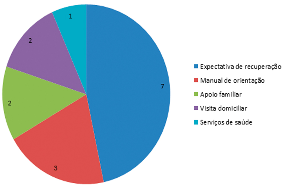 O facilitador mais relatado pelos participantes da pesquisa foi a expectativa de recuperação. As orientações tratam de como o paciente pode contribuir para sua evolução e aquisição de independência, quando possível, ou, ao menos, facilitar o cuidar 27. Com isso, salienta-se que quando o paciente adere às orientações, deseja-se obter alguma evolução ou aquisição de algum grau de independência.