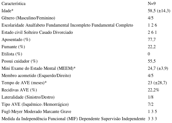A tabela 1 mostra as características clínicas e sociodemográficos dos sujeitos avaliados.
