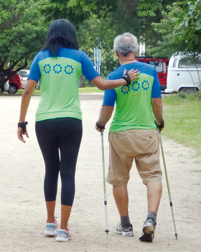 Desta forma, o uso dos bastões de CN proporciona apoio e equilíbrio, gerando segurança para a prática da caminhada20. Assim, acredita-se que a CN pode ser um modo de se exercitar tão efetivo quanto o da CL para a população com DP, pois, além de promover benefícios à saúde em geral, possibilita menor impacto nas articulações dos membros inferiores com o uso dos bastões e pode ser uma forma segura de realizar atividade física devido à maior estabilidade de tronco28, tornando viável que indivíduos portadores de DP a pratiquem sozinhos29.
