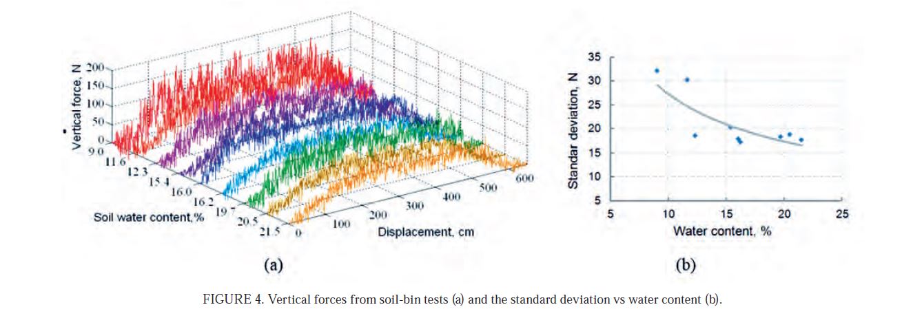 During tillage tests at different soil conditions, the following response variables were measured: horizontal force on the tool, vertical forces on the tool, soil density changes after tillage, soil profiles after tillage, and soil particles sizes distribution.