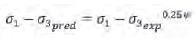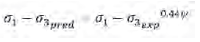 (10)An example of the approximate distribution of the exponential functions, depending on the internal friction angle of Drucker-Prager and on dilatancy (equation 7, 8, 9, and 10), is shown in Figure 4; it is shown that a suitable approximation of the predicted values in respect to the experimental ones, is reached for both the plastic failure (where a well-defined break point deformed by softening was observed), and the plastic failure deformed by hardening (where a well-defined break point was not observed).