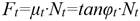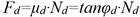 α - angle of the wedge with the horizontal φ - sliding friction angle wedge-soilThe rolling friction forces on the support (F), front (Fd) and rear wheels of the tractor (Ft) are related to the normal reactions through the respective rolling resistance coefficients (µa, µd and µt):