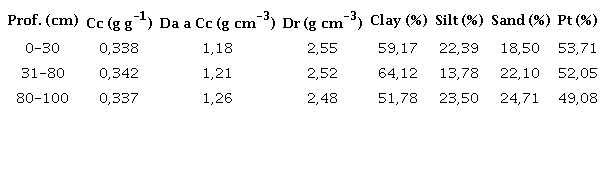 The soils are of the typical red Ferrallitic type, moderately deep and deep, with good physical-mechanical properties. The main hydrophysical properties of the soils are presented in Table 1.