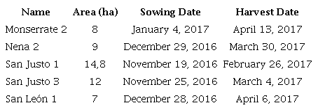 The works were carried out under production conditions, in potato crop, considering the different development phases for Romana variety, planted at different sowing and harvest dates (Table 2).