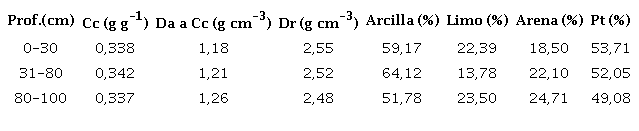 The soils are of the typical red Ferrallitic type, moderately deep and deep, with good physical-mechanical properties. The main hydrophysical properties of the soils are presented in Table 1.