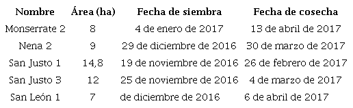 Agrometeorological information on maximum temperature, minimum temperature, wind speed and air humidity were obtained online from the site http://www.insmet.cu/, solar radiation was obtained from the agro-climatology Nasa POWER model (2018), file available at https://power.larc.nasa.gov/), previously calibrated through empirical relationships with databases (2005-2010) of the study area.