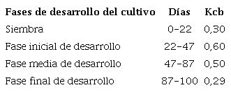 When comparing the results obtained, a correspondence between the estimated dual Kc and the single reported Kc (Roque, 1995) with deviations of 0.11 and mean square error of 0.14 was evidenced, which represented a relative error of 4.6% with low dispersions that demonstrated the homogeneity of the data.