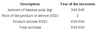 The establishment of the plant to obtain banana pulp is proposed within an area of the INSANC enterprise, therefore, for the economic evaluation; some expenses are not taken into account, which are assumed by enterprise.