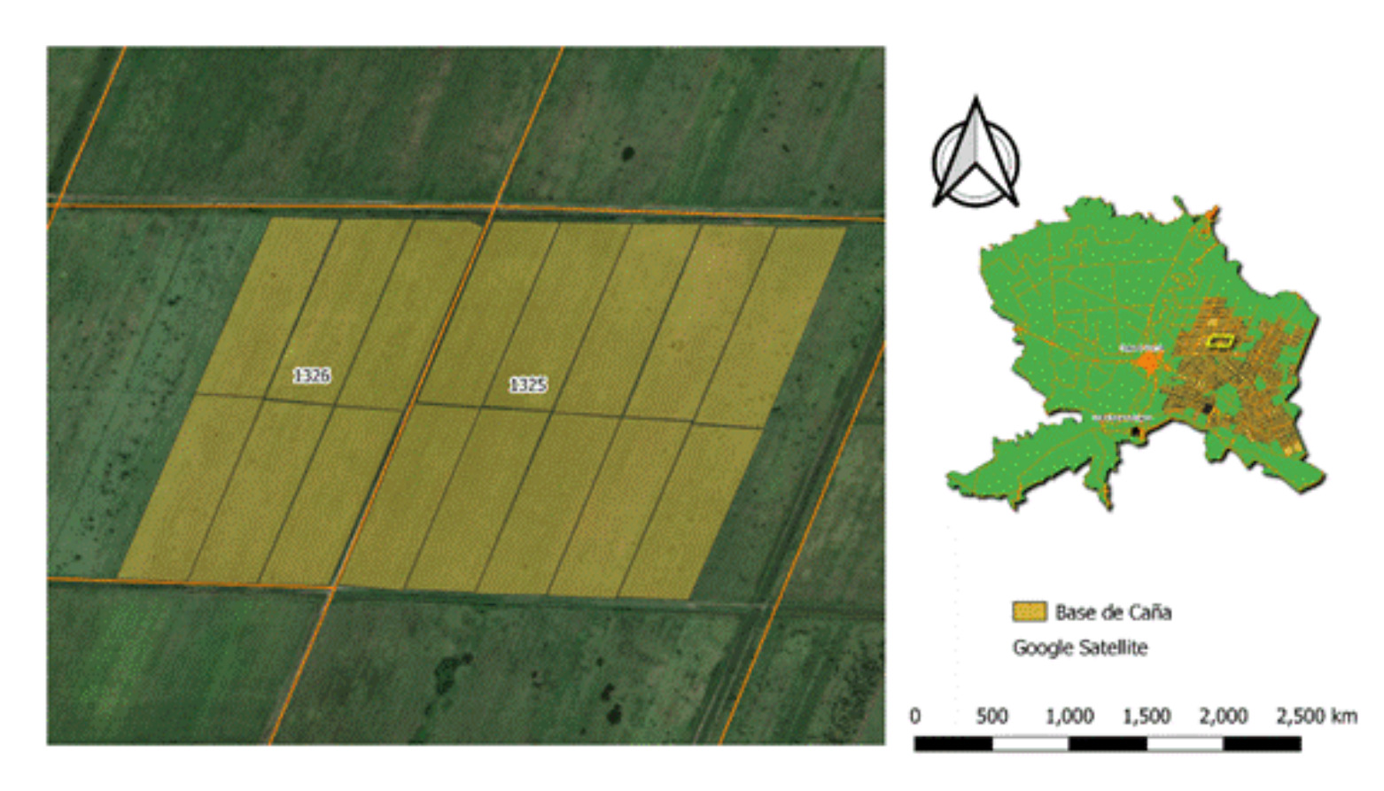 For the study, brigade number 6 of said entity that worked at UBPC Monte Lucas was selected. This brigade has a new technology equipment park consisting of three Case IH Austoft 8800 (A8800) sugarcane harvesters and six YTO 1604 moving tractors. The work area took place specifically in fields 9-10 and 1-10 of the blocks 1325 and 1326, respectively, which is located between the coordinates 22.818942 - 22.828478 of north latitude and 80.017433 - 79.991977 of west longitude (Figure 1)
