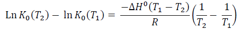 En el estudio de la termodinámica de adsorción, la determinación del valor de las magnitudes termodinámicas tales como la energía de activación, parámetros de activación, cambio de energía libre de Gibb, entalpía, entropía y el calor de adsorción son obligatorios. Estos parámetros son básicos para la caracterización y optimización de un proceso de adsorción99. Los mismos se pueden calcular a partir de la variación de la constante de equilibrio termodinámico, K0, con la temperatura100. Para las reacciones de adsorción, K0 se define como: