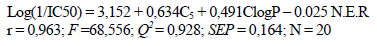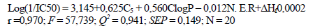 (9)donde y= Log (1/IC50) experimental; ÿ= Valor de predicción y n= número de muestras usadas.
