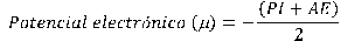 (7)Donde E+ corresponde a la energía de la especie catiónica, E0 es la energía de la especie neutra y E- es la energía de la especie aniónica.