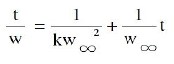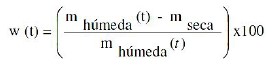 Capacidad de absorción: se midió gravimétricamente y por triplicado, pesando los discos de geles hinchados de agua a intervalos regulares de tiempo hasta alcanzar el equilibrio. Con estos datos se construyeron las isotermas de absorción1,6 empleando una cinética de segundo orden7, graficando el cociente t/w en función del tiempo t para determinar los parámetros cinéticos k ((constante de velocidad de hinchamiento) y w∞ (contenido de agua o hinchamiento cuando se alcanza el equilibrio) a partir de las siguientes ecuaciones: