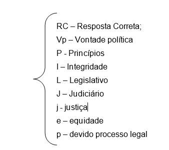 Feita essas considerações iniciais passaremos a representação da teoria de Dworkin através de uma equação matemática, cujo propósito único é mostrar que a matemática pode ser, em alguns casos, uma ferramenta para melhor explicar o direito, senão vejamos: