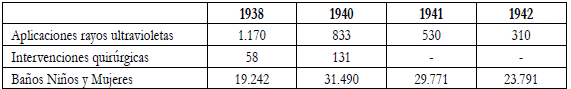 En segundo lugar, la complejidad y multiplicidad de los servicios de salud planeados distó de aquellos efectivamente brindados; solo se instalaron la maternidad, el consultorio odontológico, la cocina de leche y los consultorios externos para el control ginecológico, del embarazo y de la salud del niño durante los dos primeros años de vida. En gran medida, como ya lo hemos señalado, se debió a la insuficiencia de personal médico y técnico pero también a la efectiva concurrencia de pacientes a la nueva estructura sanitaria.