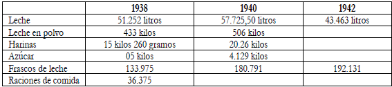 El objetivo principal del nuevo Centro de Higiene Maternal e Infantil, como ya lo planteamos, buscó combatir la mortalidad infantil, cuya causa más frecuente radicaba en la alimentación. A partir del éxito logrado en la ciudad de Buenos Aires, se impuso una nueva prestación: la Cocina de Leche para la elaboración y el reparto de alimentos. En esta Cocina, se preparaban los alimentos indicados cotidianamente, en porciones divididas con la dosificación necesaria para la crianza de un niño sano. Al mismo tiempo, buscó transformarse en una escuela para las madres en la técnica dietética infantil. Si la madre se encontraba imposibilitada de alimentar naturalmente a su hijo, la Cocina de Leche dirigida por la preparadora que era el personal capacitado en la elaboración de las fórmulas alimenticias corrientes indicadas por el médico38, proveía conjuntamente con las indicaciones médico-higiénicas, la solución del problema económico. Se entregaba diariamente, en el horario establecido, la ración para 24 horas repartidas en frascos y acondicionada en una canasta de alambre. El único desembolso requerido era un depósito en garantía de los frascos y canastas, devuelto al dejar de retirar el alimento. Durante 1933, ochenta niños recibieron cinco raciones diarias, lo que constituyó un total de cuatrocientas mensuales y doce mil anuales39.