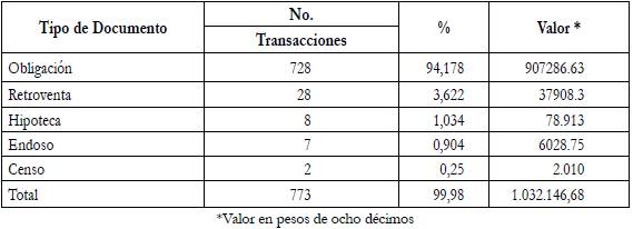 Sin embargo, las fuentes consultadas permitieron identificar los principales instrumentos financieros usados en las transacciones comerciales y determinar que la escritura de obligación fue el título que más aceptación tuvo en el mercado local durante 1849 y 1898. El gran número de operaciones económicas realizadas con este documento fue el producto de las imposiciones realizadas por los comerciantes y prestamistas para garantizar el retorno de sus dineros dados a préstamos en un mercado que era volátil y riesgoso por causas de factores sociales, políticos y económicos que alteraron su dinámica en diferentes momentos. En este sentido, el uso de este instrumento y de otros simularon la circulación de capitales en el papel porque generalmente las transacciones como las compraventas se efectuaban en la notaría donde se emulaba el pago en dinero en efectivo mediante un documento escriturado que se transformaba en un préstamo al diferir el pago de la operación en plazos.
