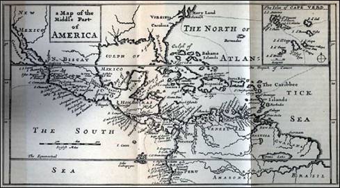 En el puente económico de carácter transoceánico que suponía el Atlántico durante el siglo XVII, la piratería representó una estrategia, bien elaborada y perfectamente organizada, ejercida por las naciones europeas que fueron excluidas del reparto papal que signó la bula Inter Caertera en el siglo XV3. Con el ejercicio del corso primero, y posteriormente el bucanerismo, Estados coloniales en marcado expansionismo, como Gran Bretaña y Francia, fracturaron hasta casi romper el complejo monopolio comercial de Indias y el sistema mercantilista que favorecía enormemente a la Corona española y a la de Portugal4. En este complicado y belicoso contexto surgió el primer texto de Dampier: A New Voyage...,5 el cual tuvo una excelente acogida dentro del gusto literario europeo de su época, pues, para 1698, ya había sido reeditado tres veces por James Knapton, quien no dejó de solicitarle a Dampier más material para futuros volúmenes. De estas solicitudes se desprendieron: Voyages and Descriptions en 1699 que agrupaba: A Supplement of the Voyage Round the World, The Campeachy Voyages y A Discourse of Winds; A Voyage to New Holland (Parte 1) en 1703, y A Continuation of a Voyage to New Holland (Parte 2) en 1709. En los dos últimos se narra, en orden cronológico, su segunda circunnavegación mundial, hecha a bordo del St. George, y su tercer viaje, hecho a bordo del Duke. La primera obra de Dampier, A New Voyage..., contiene tres mapas ilustrativos: "A Map of the Middle Part of America" (Cap. 2), "A Map of the East Indies" (Cap. 10), y "Map of the Bashee Islands, Pulo Condore, etc." (Cap. 14) que se focalizan en ilustrar las bahías de Campeche y Honduras, las Indias Orientales, y Mindanao en el océano Pacífico, respectivamente.