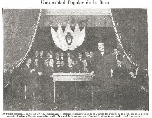 "En nuestro continente voy a mencionar la Universidad Popular de La Boca, en Buenos Aires, sostenida por la Sociedad Lux (sic), y que es una institución vigorosa, que presta positivos servicios a la población de un extenso barrio de esa capital.