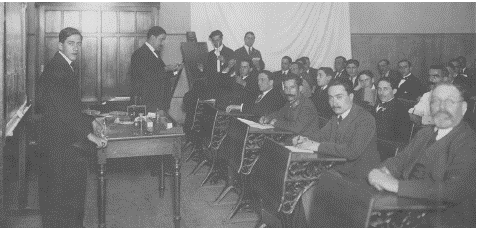 Dicha sede de la calle México era también, como dijimos, la sede del Partido Socialista, una casa de amplias dimensiones y construida de acuerdo a sus fines y necesidades peculiares. Era de propiedad del compañero Haupt, un antiguo obrero alemán a quien se le había expulsado de su país en virtud de la ley bismarckiana contra los socialistas, pero que en Argentina se había enriquecido explotando un taller metalúrgico, cuyas utilidades invertía en la construcción de locales para el Partido, las sociedades gremiales y las cooperativas. La sede resultó ser una especie de escuela en la que todos se sentían estimulados a la acción. La labor cultural tenía por instrumentos principales la biblioteca, las conferencias, los cursos breves dictados por la Sociedad Luz y el instructivo material de lectura que ofrecía el periódico La Vanguardia. La Sociedad Luz despertó mucho interés y contribuyó poderosamente a la difusión de los conocimientos científicos más diversos: Kliman explicaba con muchas proyecciones y muy pocas palabras los aspectos más interesantes de la astronomía; el doctor Augusto Bunge se especializó en los problemas vinculados a la salud humana, a la higiene general y a la vivienda obrera; el entonces estudiante de medicina Enrique Dickmann67 dictaba cursos elementales de anatomía y fisiología humana; el también estudiante de medicina Ángel M. Giménez dictaba cursos sobre salud sexual y la defensa contra las afecciones venéreas. Otros cursos que se dictaron fueron de historia universal, elementos de literatura, gramática castellana, química experimental y evolución orgánica, por los profesores Enrique del Valle Iberlucea, Alberto Gerchunoff, Fenia Cheertcoff de Repetto, Carlos Roqué68 y Nicolás Repetto, respectivamente69.