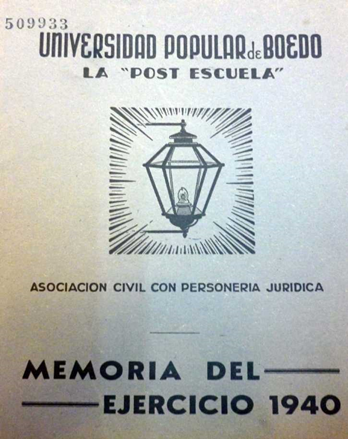 En esta república de escritores ellos impulsaron la fundación de la UPdB, también conocida como la "Post Escuela", el 12 de febrero de 1928, en la sala del cine Los Andes. El acta fundacional tiene la firma de 74 personas y muestra la designación del primer Consejo Directivo, que tuvo como presidente a D. José González Castillo, con quién colaboraron el Dr. Julio Cruciani48 y Juan M. Lilla como vicepresidentes, y el Señor César Garrigós como secretario. El acto inaugural se cumplió el sábado 4 de agosto de ese mismo año en el cine Los Andes. La UPdB fue la segunda de tal tipo en constituirse en Buenos Aires, siguiendo el ejemplo de la UPdLB, creada en 191749.