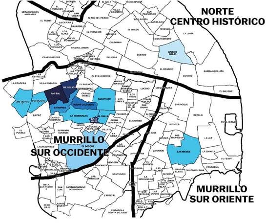 Esto llevó a que la ciudad se dividiera urbanísticamente cuando clase media y las elites se trasladaron al norte y el centro occidentes, dejando los barrios de trabajadores y populares en el sur, separados por las zonas industriales. En este espacio, los palenqueras se convirtieron en pobladores de estas zonas ubicadas en el suroccidente de la cuidad, como parte de un movimiento social. En este sentido, la movilidad como concepto permite comprender que durante este proceso de asentamiento la constitución de los barrios fue uno, de las principales expresiones de negridad, pues como explica Hannam, Sheller y Urry80 comprender los movimientos de los afroamericanos también puede revelar información sobre el asentamiento, o "amarres", de espacios y lugares negros, como es el caso de lo que vivió el suroccidente de la ciudad.