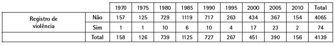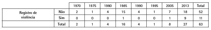 Quando selecionados apenas eventos de protesto em Porto Alegre com o objeto “transporte público” os dados apresentam poucas diferenças na comparação entre uso de ações violentas por parte de manifestantes e repressão policial. A tabela 4 apresenta a variação do registro de repressão policial no período de 1970 a 2013 nos eventos de protesto realizados em Porto Alegre com o objeto de reivindicação classificado como “transporte público”.