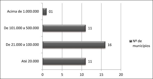 Tal percepção reforça fenômeno apreendido por outras pesquisas nacionais. Costa (2010) estimou uma população entre 20 mil e 500 mil habitantes na maioria das cidades com orçamentos participativos no período 2000-2004. Semelhantemente Pires e Vaz (2010) encontraram praticamente 47% das experiências de orçamentos participativos brasileiras em cidades com mais de 100 mil habitantes. E de modo análogo o estudo de caso sobre o estado de São Paulo, no período 1997-2000, apontou para o fato das cidades, promotoras de orçamento participativo, terem uma população variável entre 50 e 200 mil habitantes (Carvalho et al., 2002).