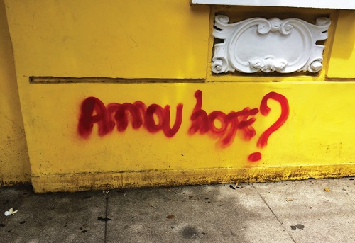 Figure 2. Anonymous graffiti provoking a reflection on attitudes of love in daily life. Photo credit: Christina Vital da Cunha.