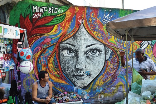 Foto: Christina Vital da Cunha.Há jovens do sexo feminino e do sexo masculino. Há evangélicos e não evangélicos. O que importa nesta análise exploratória é a conexão entre a produção que estão fazendo na cidade e a conformação dela com a apresentação histórica do Rio de Janeiro, e que se atualiza no contexto das Olimpíadas, como belo, exuberante, harmônico, “amorificado”. Os projetos financiados pela prefeitura e pelo estado, assim como muitos dos que não são resultado de recursos públicos, modelam e produzem ao mesmo tempo em que dão visibilidade a uma forma de ser cidadão carioca, a um estado de espírito que caracterizaria os moradores da cidade e que contagiaria os que a visitam. As artes que formam essa paisagem que chamo aqui de motivacional estariam produzindo e projetando, em outras palavras, a carioquice.