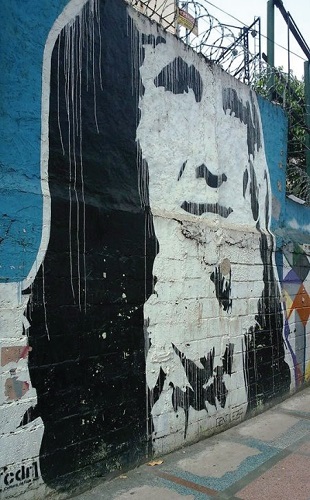 Figure 9. Ment and Bigo. Portrait of a girl made of positive words like peace, love, truth, confidence, Graffiti, 2014. Photo credit: Christina Vital da Cunha.