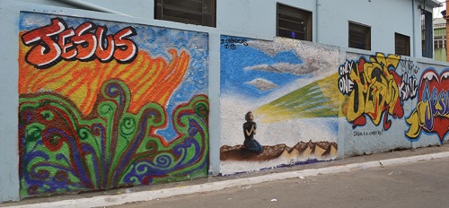 Figure 14. Bala Machine and Killyacking. Gospel mural made during Metting of Favela in Duque de Caxias, Rio de Janeiro (2014). Photo credit: Christina Vital da Cunha.