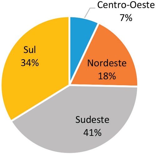 Graphic 3. Percentage of articles published in dossiers (2007- 2017) by Brazilian region.