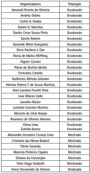 Observando a titulação dos organizadores vamos notar que a grande maioria possuía título de doutor na data de publicação do dossiê, o que evidencia que a temática ensino de Sociologia alcançou prestígio entre pesquisadores qualificados.