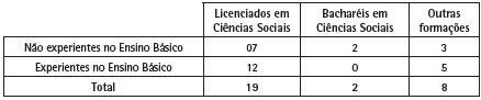Buscamos observar a relação entre os organizadores com a Sociologia do Ensino Básico. Para isso observamos o currículo lattes de cada um deles buscando averiguar quais atuaram em algum momento no Ensino Básico. A Tabela 4 apresenta a formação inicial dos organizadores, destacando a experiência com o Ensino Básico.