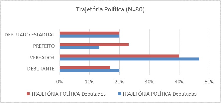 Os dados acima se conciliam com as respostas à questão relativa à trajetória política dos respondentes: a maioria deles iniciou a carreira política no Legislativo (46,7% mulheres e 40% homens) e no Executivo (13,3% mulheres e 23,1% homens) municipais, seguindo a tendência já estudada na literatura especializada.10 Tais dados confirmam ainda a relevância da competição local enquanto indutora de políticas públicas em outros níveis de representação, a despeito das profundas clivagens existentes entre os estados e municípios brasileiros, e de processos de socialização política significativos. Importante assinalar que, dada a baixa produção legislativa dos vereadores(as) nos municípios de médio e pequeno porte, o atendimento das demandas individuais dos eleitores, através de mecanismos formais e informais, desempenha um papel central no processo de socialização política dos futuros aspirantes ao Legislativo estadual (ver Rocha e Kerbauy, 2014, p. 23-29).