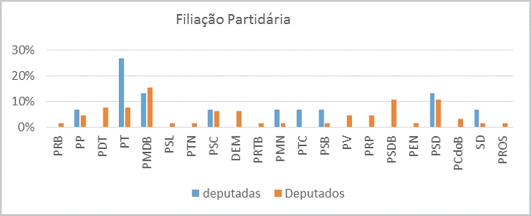Por um lado, a maioria das mulheres foi eleita por partidos de alta representação (PT e PMDB), seguindo a lógica do quociente eleitoral: partidos grandes podem apresentar maior quantidade de candidatos. Por outro lado, partidos de esquerda tendem a ser mais abertos a setores sociais historicamente discriminados, como é o caso das mulheres e negros. A Assembleia da Bahia é exemplar nesse sentido: dos doze representantes eleitos pelo Partido dos Trabalhadores (PT) nas eleições de 2014, quatro são mulheres. Acrescente-se a isso a inegável influência do capital político emanado do parentesco com políticos, que, no caso das deputadas, chega a 27%.