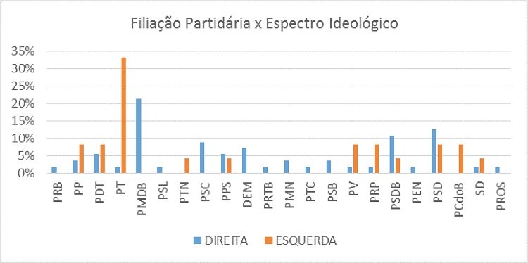 Esses resultados seguem na mesma direção dos achados de Novaes (1994), e Limongi, (1994, 1999), Almeida e Moya (1997) e Nicolau (2000), entre outros. Segundos tais autores, os alinhamentos majoritários e a disciplina partidária correspondem aos cortes clássicos entre esquerda e direita. Tais alinhamentos repetem o desenho ideológico das coligações eleitorais, ainda que não signifiquem organicidade ou fidelidade partidária e prática legislativa colegiada. Segundo Novaes (1994, p. 114), “as estruturas partidárias são frágeis, mas as afinidades ideológicas conformam campos estáveis”.