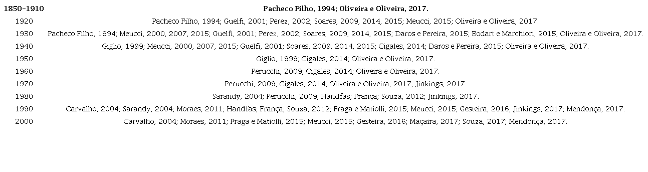 Uma forma de organizar os estudos que apresentaram alguma dessas preocupações é pelas décadas sobre as quais se debruçaram. Por se tratar da trajetória histórica, metodologi-camente foi definido como limite temporal o ano de 2009, não incorporando na pesquisa, portanto, trabalhos cujo objeto tenha sido o ensino de Sociologia na década de 2010.