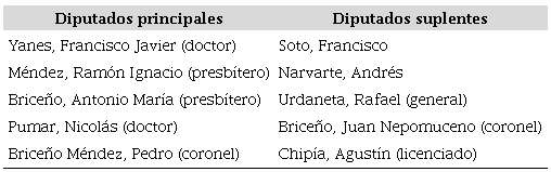 Entre los votantes existió consenso por el nombramiento del general Francisco de Paula Santander (14 votos), el doctor Salvador Camacho (14 votos), el general Carlos Soublette (13 votos) y el doctor Vicente Azuero (12 votos) como representantes principales; no así para el quinto diputado, quedando los votos divididos entre los coroneles Bartolomé Salom (tres votos) y Pedro Briceño Méndez (un voto), y el doctor Juan Bautista Estévez (un voto).47 Igual caso para los suplentes: el doctor Manuel Baños (15 votos), el doctor Estanislao Vergara (13 votos), el coronel Pedro Briceño Méndez (12 votos) y el doctor Juan Bautista Estévez (11 votos); el coronel Salón sería el quinto diputado suplente.48 La comunicación fue recibida en Bogotá el 19 de septiembre de 1820.
