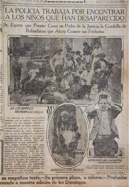 Otro referente importante en nuestro análisis es el de Alberto del Castillo, quien se adentra también en las representaciones e imágenes de los niños en la ciudad de México durante 1880-1920. El autor analiza el papel de la fotografía en la prensa. Imágenes similares de niños desnudos, pobres y mal vestidos con otros niños, o bien ellos mismos bien vestidos y alimentados eran muy comunes en la prensa de fines del siglo XIX y principios del XX. “Estas transformaciones sintetiza el mensaje propagandístico de todo reportaje” que tenían la intención de cambiar lo atrasado y primitivo con lo moderno. Del Castillo señala que tanto en la prensa y las revistas se dedicaron amplios reportajes fotográficos a diversos temas relacionados con la infancia, explorando varios aspectos como la criminología, medicina y pedagogía cívica.8