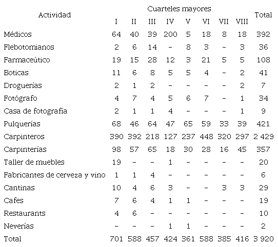 Para la contabilización y ubicación en la ciudad de los primeros, se consideró aquellos que tuvieran uno o varios propietarios y con localización física diferente; para evitar la duplicación se excluyeron los que tuvieran el mismo propietario y localización a lo largo de los años, asimismo los registrados con dueño idéntico al que formaba parte de una compañía.69 Con respecto a la ubicación de estos negocios, 61.53% se concentraba en los CM I y II, cercanos al centro de la ciudad donde confluía la actividad comercial para algunos sectores de la población; 27.68%, en los cuarteles III y IV; y 10.76%, en los cuarteles v y vii ubicados en la periferia, zona de producción y asentamiento de vidrieros a la que acudían el sector de la población con menos recursos económicos y los mercaderes itinerantes.